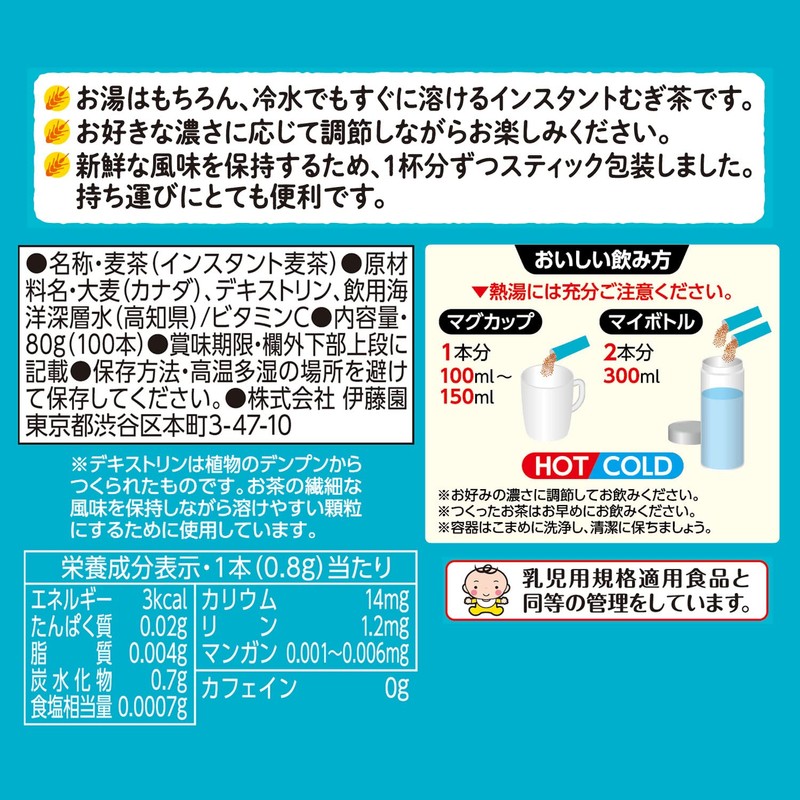 Itoen Health Mineral Mugicha Powder, 0.03 oz (0.8 g) x 100, Stick Type