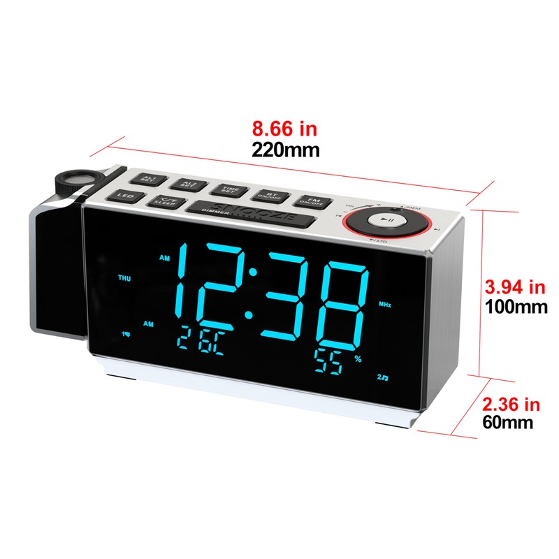 - TEMPERATURE & HUMIDITY DISPLAY: It shows room temperature (Celsius / Fahrenheit degree) and humidity display according to your setting. This projection alarm clock can rotate 180 degrees to project time, allowing you to easily view information from different angles. Never struggle to read the display again.