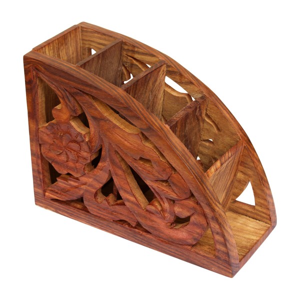 ITOS365 Wooden Floral Carved Remote Control Rack Stand Holder Storage Organizer Home Office Decor