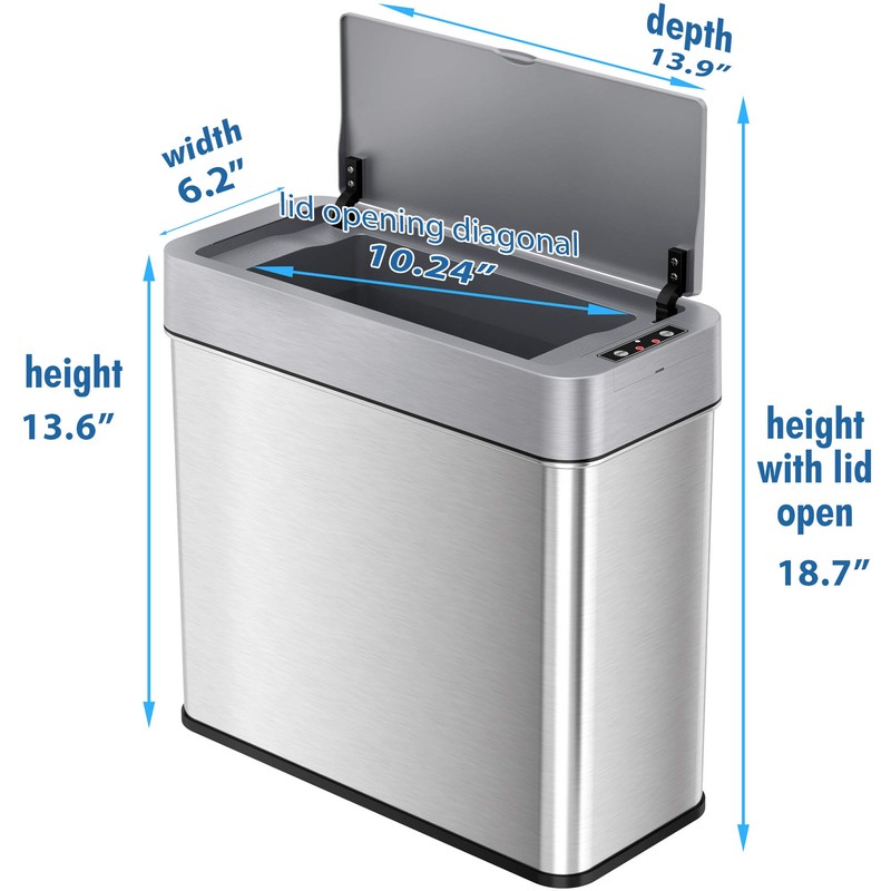 - 100% TOUCHLESS – Just the motion of your hand opens the lid automatically! Lid open and close is soft and silent. It’s the hygienic and convenient choice