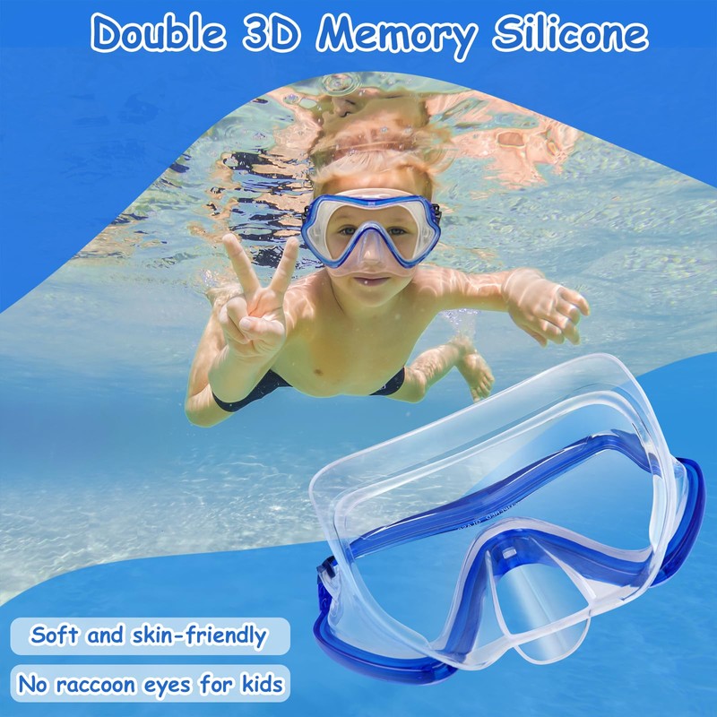 - 🪸【Widen Silicone Skirt, Seal Without Leaking】The sealing skirt of kids goggles is made of liquid silicone, soft and skin-friendly, suitable for different face shapes. New upgrade of widened skirt is more effectively reduces friction on faces and prevents red marks. Double-layer 3D memory silicone gasket design perfectly fits kids faces comfortably, allowing kids to stay away from raccoon eyes and enjoy carefree water fun.