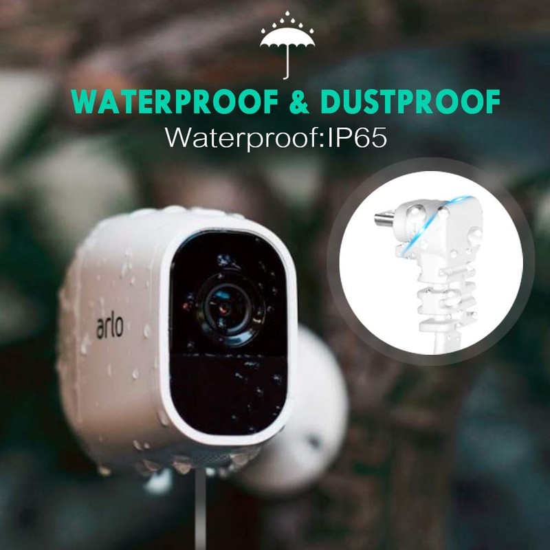 - The right-angled micro USB end is specially designed for Arlo cameras to make it compatible with any type of camera mounts.