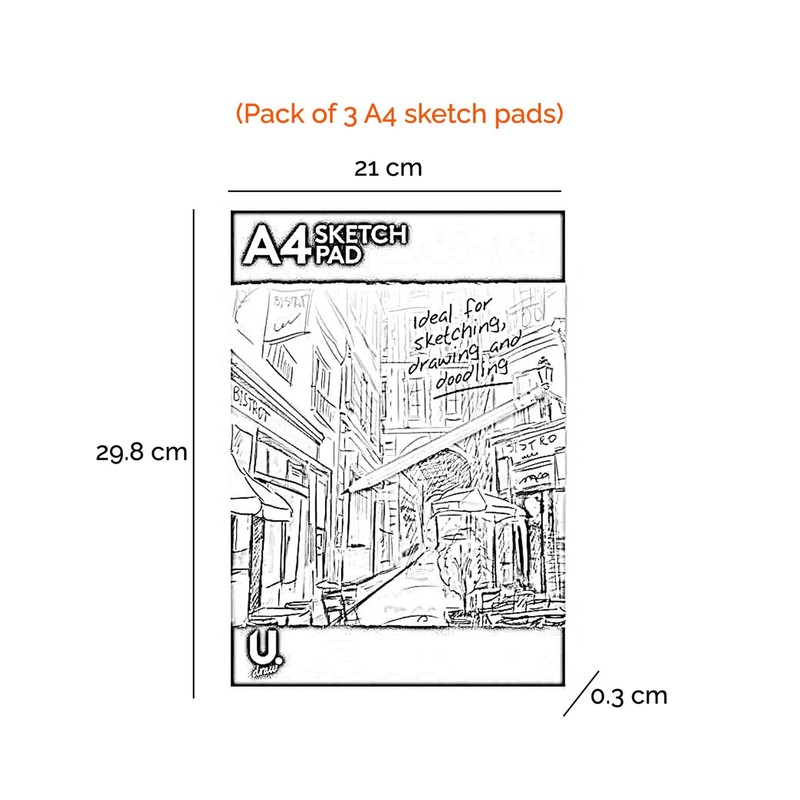 iTrend A4 Sketch Pad - Drawing Paper - Coloring Book and Art Paper - Easy to Use Doodle Pad - Creative Fun White Paper Grade Quality Back Card Cover - Pack of 03-70 GSM