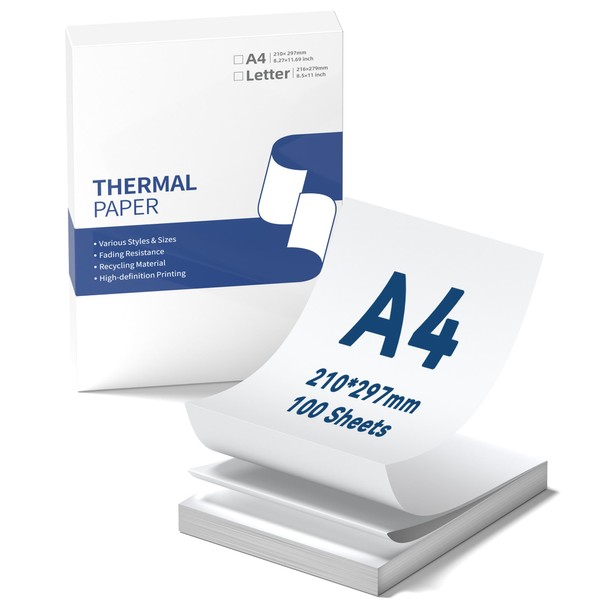 - BPA-free: in a box there are 100 sheets of A4 thermal paper - 8.27 x 11.69 inches (210 x 297 mm). It is a safe thermal paper printing material, the use of this paper can reduce the impact on the environment