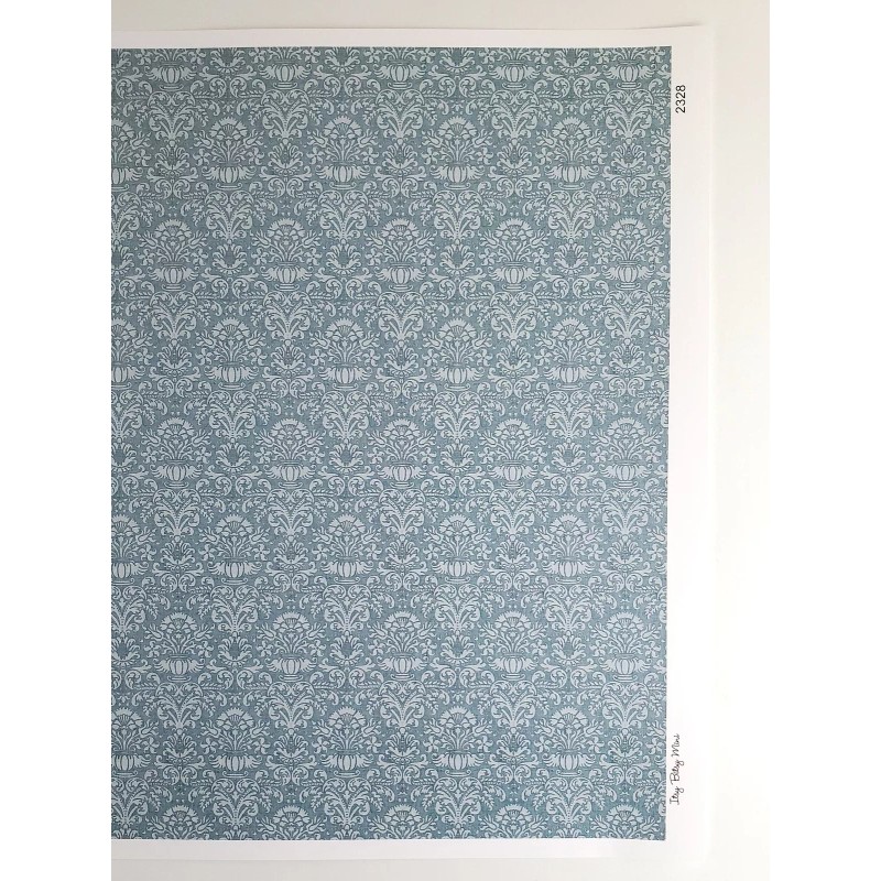 Itsy Bitsy Mini Dollhouse Wallpaper Damask Blue Gray Victorian 1:12 Scale Itsy Bitsy Miniatures