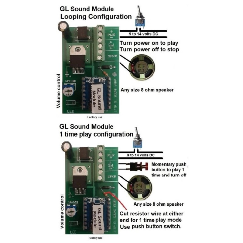GL Sound Modules $39.95 ea. Does not include speaker, switches or power source.