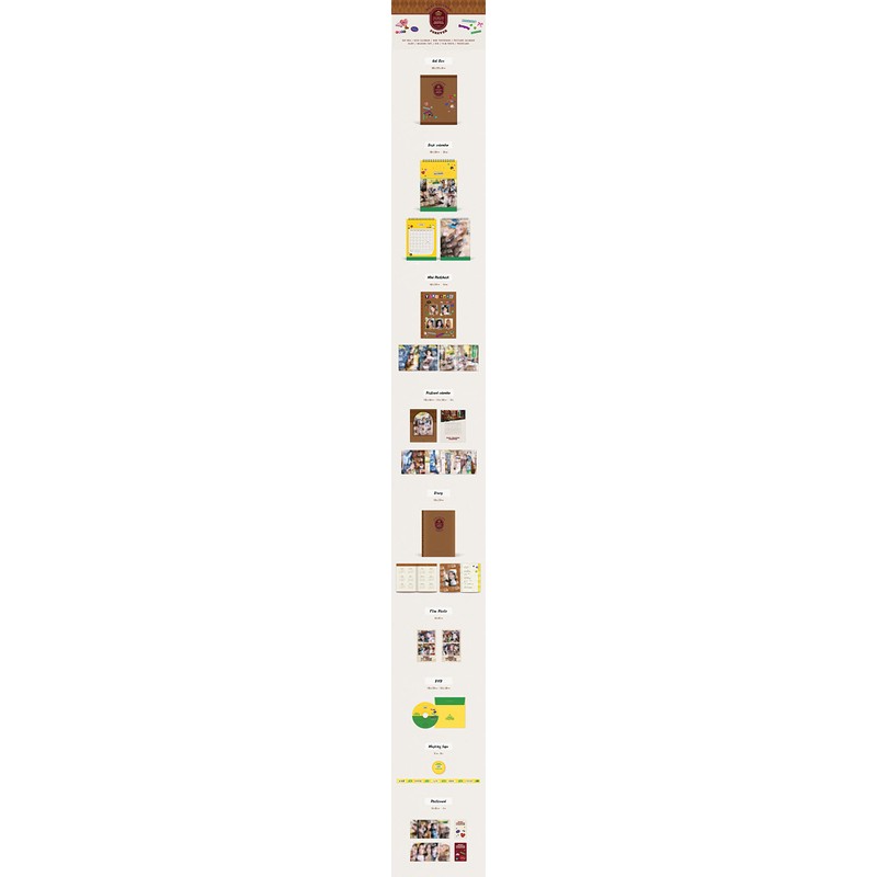 - 📦 Contents : OUT BOX, DESK CALENDAR, MINI PHOTOBOOK, POSTCARD CALENDAR, DIARY, MASKING TAPE, DVD, FILM PHOTO, PHOTOCARD