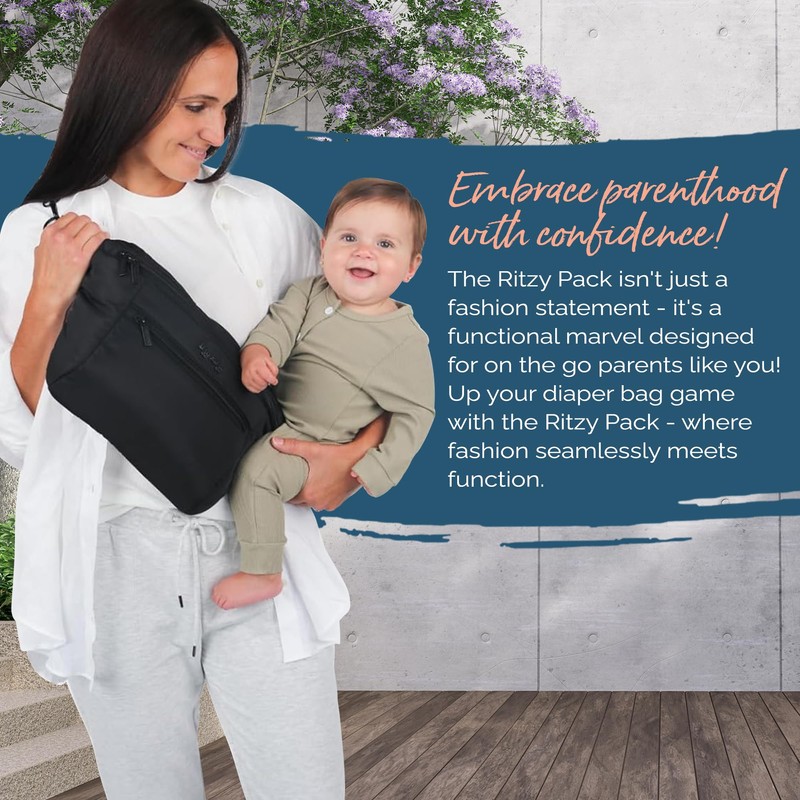 - 6 TOTAL POCKETS: Measuring 5" L x 2.5" W x 8" H with 6 total pockets, including 4 spacious zippered pockets, the Ritzy Pack keeps you perfectly organized. Store your phone, wallet, keys, and all the baby essentials, making it an ideal small baby bag.