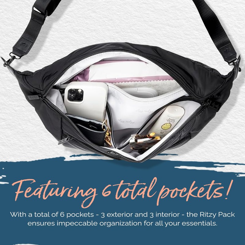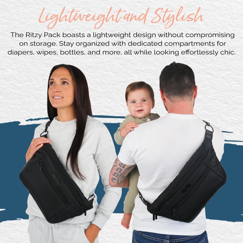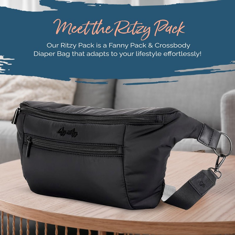 - ELEVATE YOUR STYLE: The Ritzy Pack's adjustable strap, extending from 24" to 37.5", empowers you to curate your own fashion statement. Whether you opt for the classic fanny pack diaper bag, chic belt bag, or modern crossbody diaper bag, your personalized style is always at arm's length.