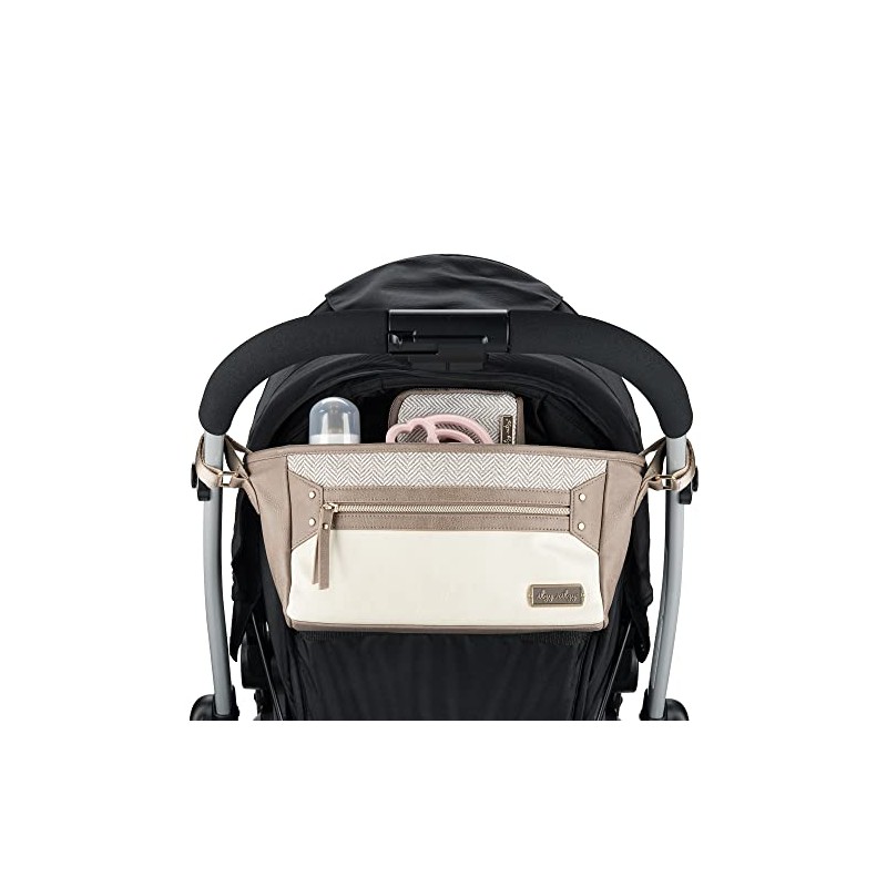 Itzy Ritzy Adjustable Stroller Caddy, Stroller Organizer Featuring Two Built-in Pockets, Front Zippered Pocket and Adjustable Straps to Fit Nearly Any Stroller, Vanilla Latte