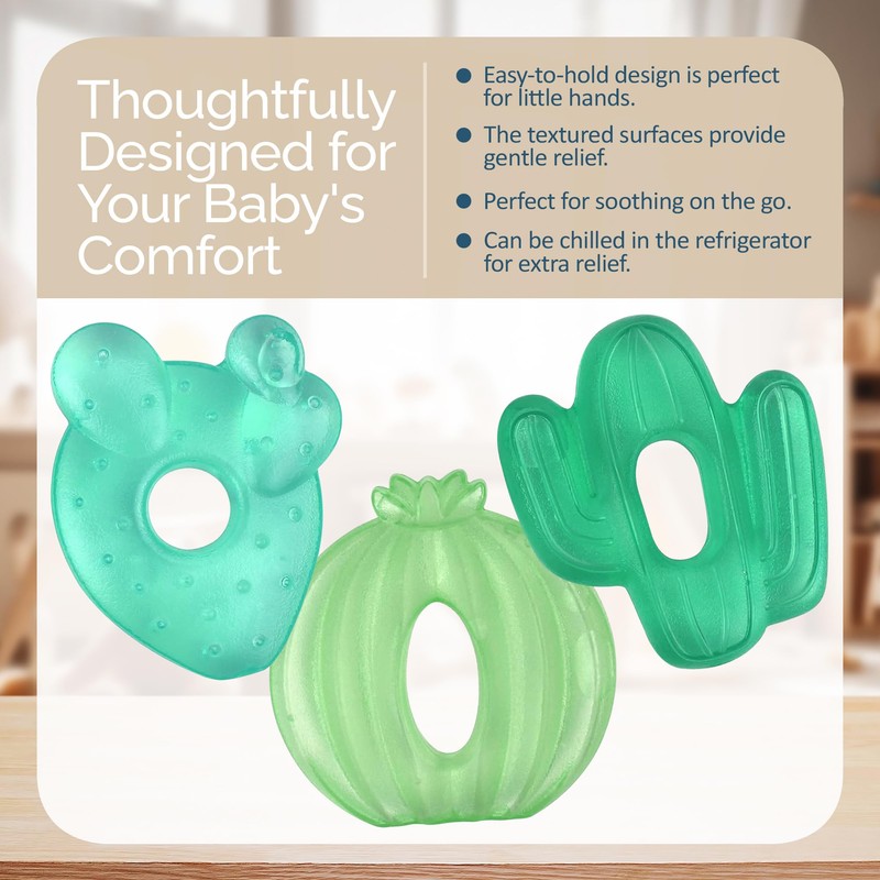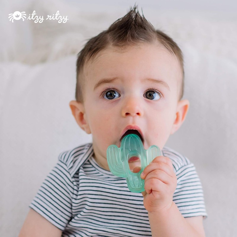 Itzy Ritzy Itzy Ritzy Water-Filled Teethers - Cold Cutie Coolers Textured On Both Sides to Massage Sore Gums & Emerging Teeth - Can Be Chilled in Refrigerator, Set of 3 Green Cactus Water Teethers