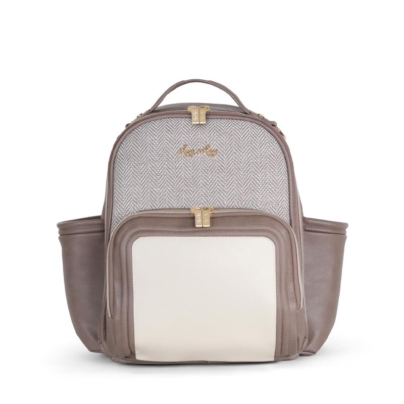 Itzy Ritzy Mini Plus Diaper Bag Backpack – Chic Mini Diaper Bag with Changing Pad, 10 Total Pockets (6 Internal and 4 External), Grab-Top Handle and Rubber Feet (Vanilla Latte)