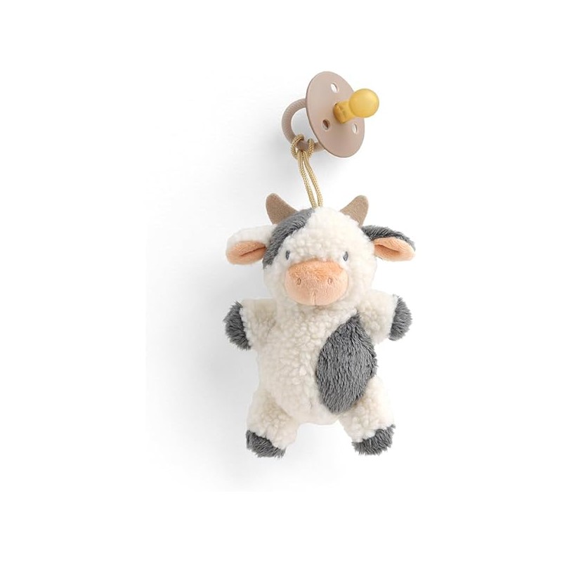 Itzy Ritzy Pacifier & Lovey Set - Natural Rubber Paci with Stuffed Animal Lovey - Detachable Plush Cow Pacifier Holder & Coordinating Natural Rubber Soother, Ideal for Ages 0-6 Months (Cow)