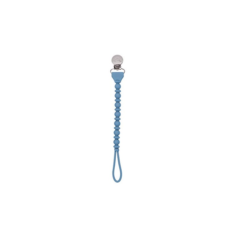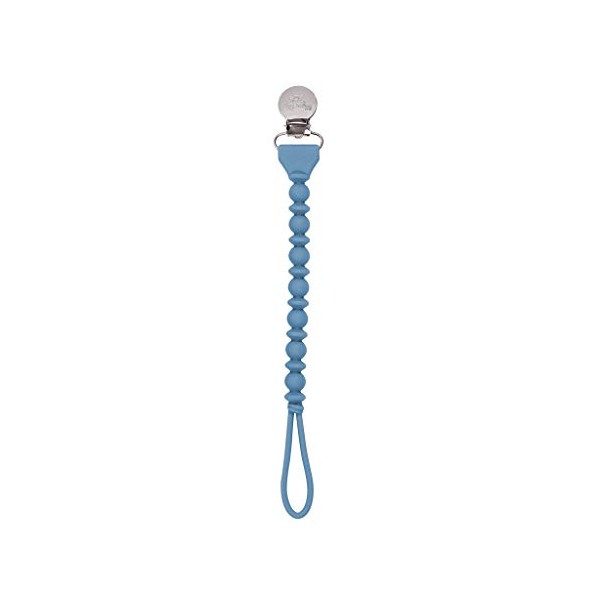 Itzy Ritzy Silicone Pacifier Clip; 100% Silicone Pacifier Strap with Clip Keeps Pacifiers and Teethers in Place; Features One-Piece Beaded Design & Silicone Cord, Blue with Silver