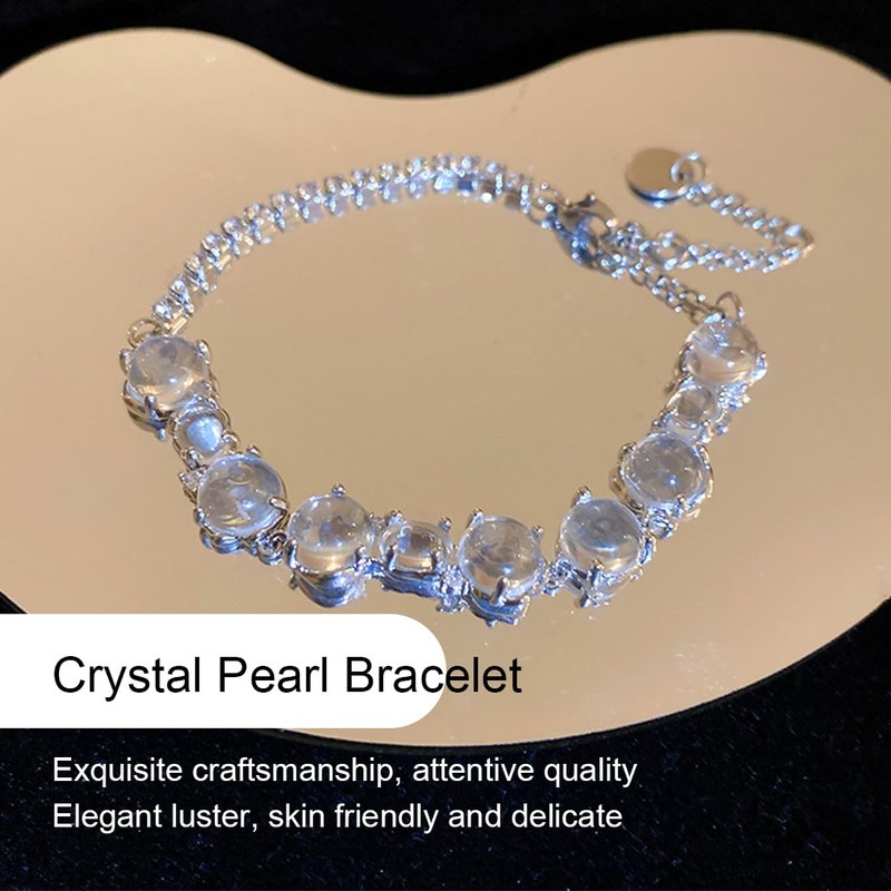 IUDWCG - 1 x Women's Silver Bracelet, Crystal Bead Bracelet, Cat's Eye Beads Bracelet, Adjustable Bracelet, Sparkling Friendship Bracelet, Gift, Women, Girlfriend, Wife, Silver Jewellery, silver