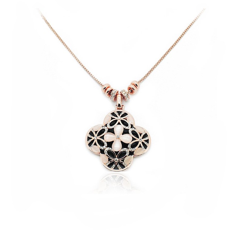 [IUHA] ブランド 幸運を呼ぶ 四葉 キャッツアイネックレスクリスタルを使用金属アレルギーと変色防止 アクセサリー ギフト