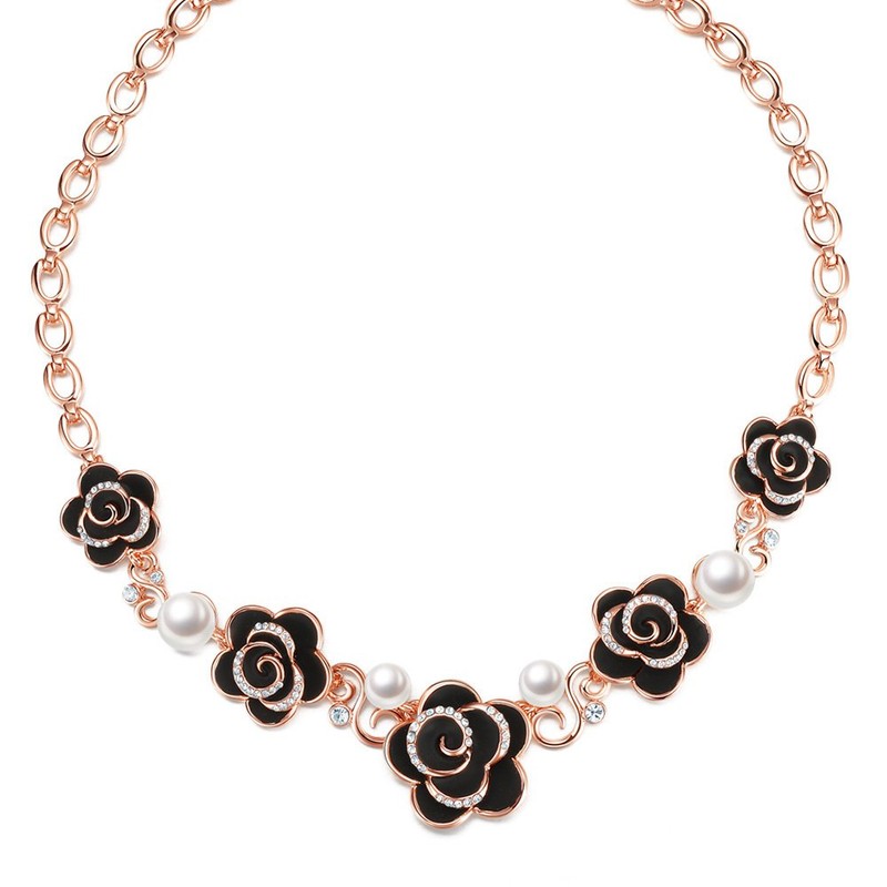 [IUHA] カメリア パール お花 フラワー ネックレス (ブラック)