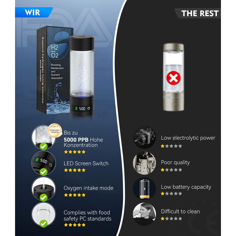 - 🥰【2025 5.0 New Upgraded Model】A historic breakthrough in the field of hydrogen water bottle! The IUHFSIFS hydrogen water bottle uk, which has won multiple international certifications, has now sold more than 1 million units worldwide and is deeply loved and recognized by users.