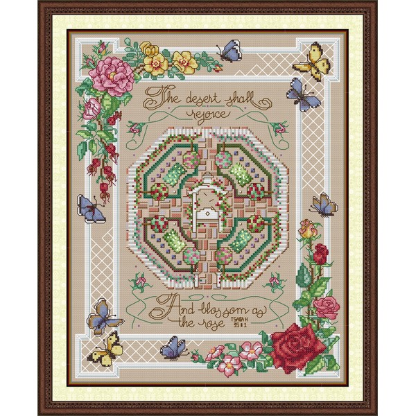 IUHUI 14 Count Stamped Cross Stitch Kits for Beginners Adults, Rose Garden Pre-Printed DIY 14ct Embroidery Sewing Starter Kit Needlework Easy Patterns