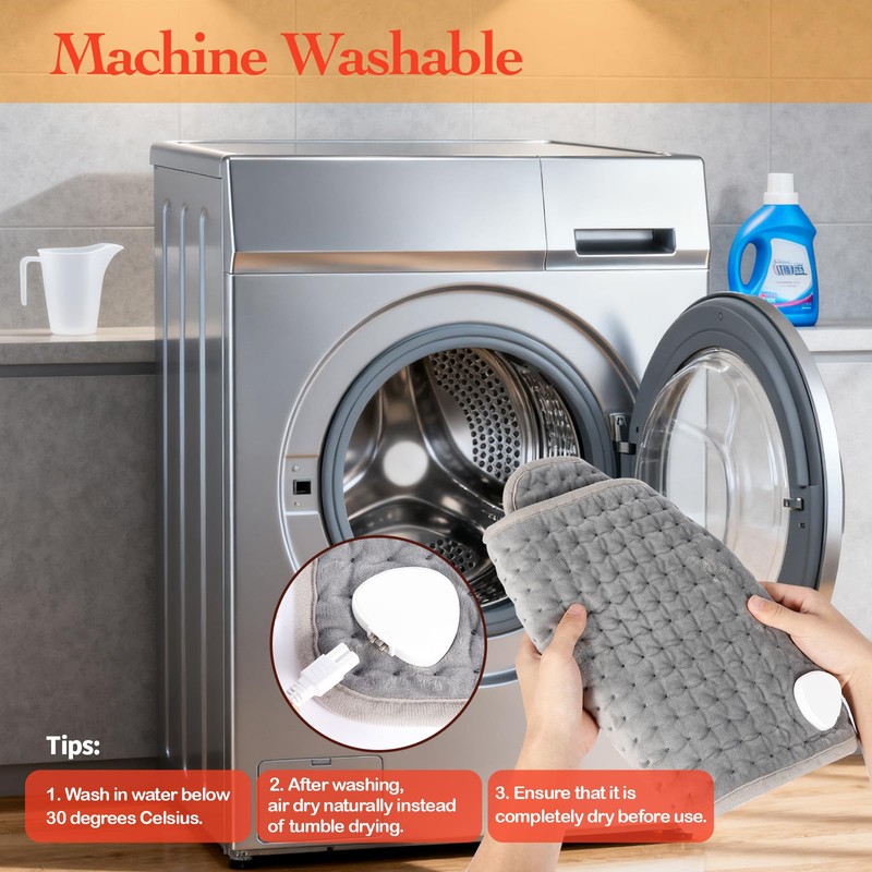 - [Safe & Machine Washable] - This heated pad features automatic shut-off and overheat protection, combining safety and durability for worry-free use. The plug has a waterproof design, and the heating pad is machine washable. (Please unplug the power cord before washing and thoroughly dry it after washing.) For more usage precautions, please refer to the instruction manual.