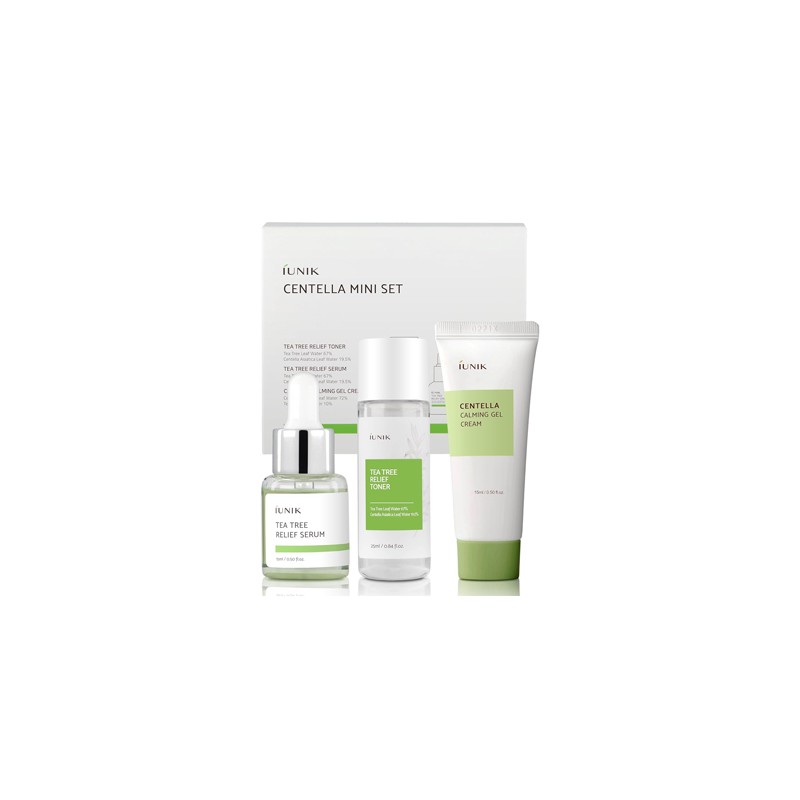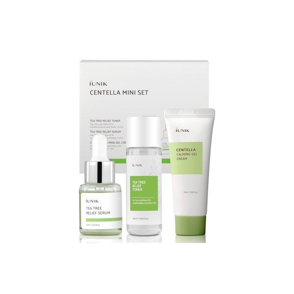| Includes: | Centella Calming Gel Cream (mini), Centella Asiatica Toner (mini), Tea Tree Relief Serum (mini) |