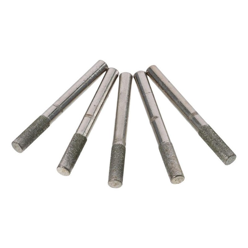 iuniq 5 pcs 2.36 Inch Exquisite Diamond Burr Bits, Silver Durable Cylinder Grinding Burr for Carving
