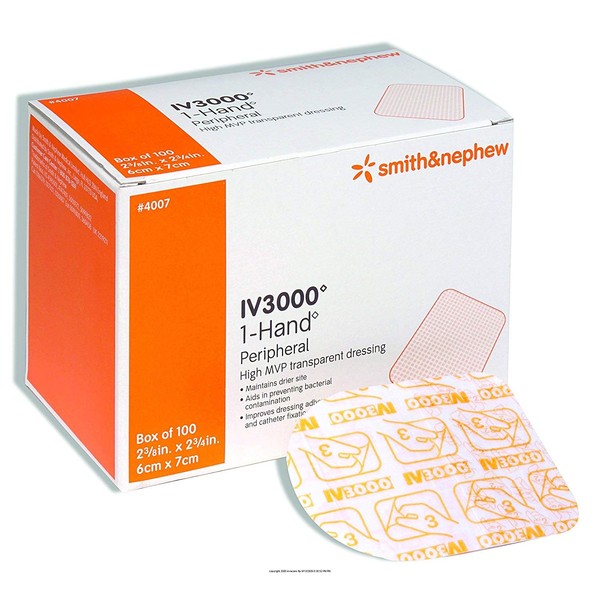 IV 3000 1-Hand 2 3/8" x 2 3/4" Transparent Adhesive Dressing [4007] 100 ea