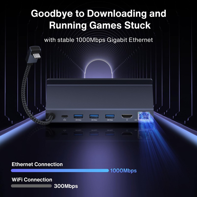- 8-in-1 gaming docking station: This Steam Deck OLED dock provides ultimate 6-in-1 connectivity. With a 4K@120Hz HDMI port, a 1Gbps Ethernet port, three 5Gbps USB-A 3.0 ports, and a fast charge USB-C port, this docking station can perfectly match your Type-C game console. The two included joystick caps can protect your joysticks from external friction and scratches.
