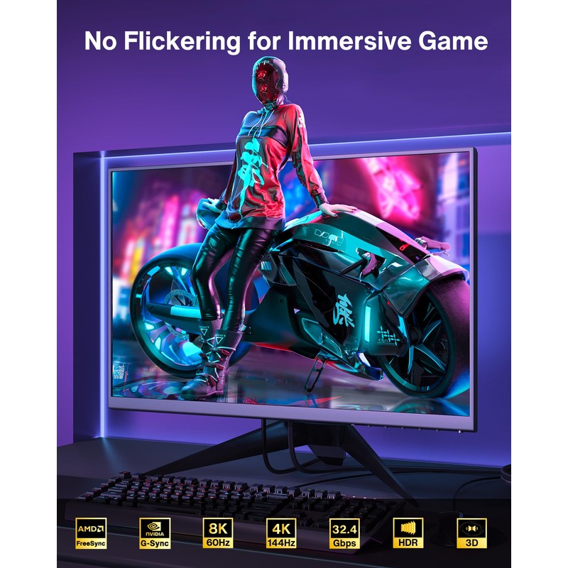 - [Enhanced Gaming Experience] The DisplayPort 1.4 Cable provides higher bandwidth, HBR3 supports 32.4 Gbps of bandwidth; High refresh rate and high resolution, Maximize the performance of your graphics card and monitor, to allow you to clearly perceive the movement of enemies; No motion blur, screen tearing or flickering; Dynamic HDR can optimize the game's dark picture and enhance the details, especially in FPS, 3A masterpieces and MOBA games