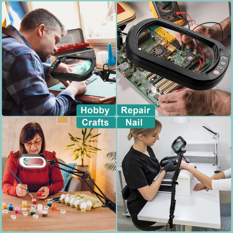 - Color Modes & Adjustable Lighting: Featuring adjustable color temperatures and flicker-free LED illumination, this magnifying light allows you to customize the brightness from % to %. Achieve the perfect lighting conditions for any project, whether you're reading newspapers, crafting, coloring, puzzles, crocheting, and various crafts and hobbies