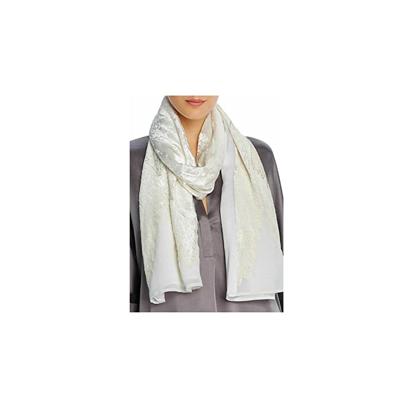 Ivory Echo Design Velvet-Panel Beaded Tubular Scarf formal wrap 20"w x 72"L