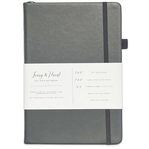 - Unlike Competitors, Ivory & Point is a Superior Quality A5 Dotted Bullet Journal. With Top-Quality Dot Grid Notebook Paper, Premium Spine Binding, Attractive Silver Foil Edge, Large Convenient Back Pocket, Durable Thick Hard Cover with Deluxe Faux Leather Finish, Handy Page Ribbon, Pen Loop Holder, Sturdy Elastic Closure Band, 180 Lay-Flat Dotted Journal for Amazing Artwork and Journaling. If you are after superior quality, look no further than Ivory & Point.