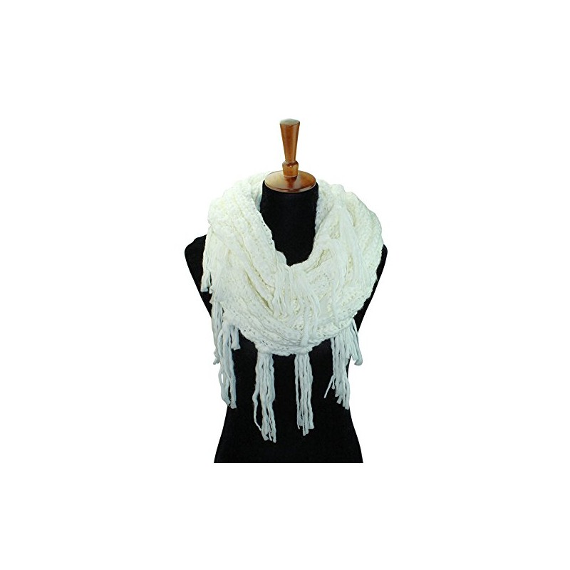 Ivory White Knit Infinity Scarf With Draping Fringe
