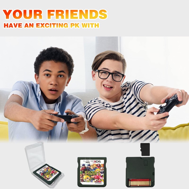 - 【Super game feast】510 in 1 games pack card cartridge,super game combo for game fans. 510 different popular types of games to meet any of your gaming needs. Each game can store the progress of the game.