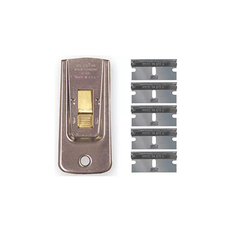 ESPECIFICACIONES: TRES raspadores de cuchillas de afeitar y TRES paquetes de 5 cuchillas, grosor de la hoja:. 009 pulgadas.