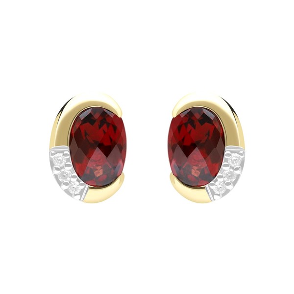 Ivy Gems 9ct Yellow Gold Garnet and Diamond Half Moon Stud Earrings