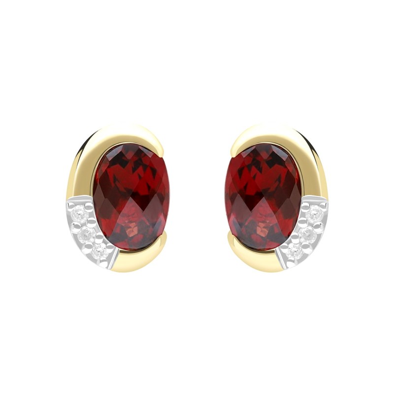 - A timeless pair of pineapple cut Garnet and Diamond stud earrings. Set in a sweet half moon 9ct gold setting.