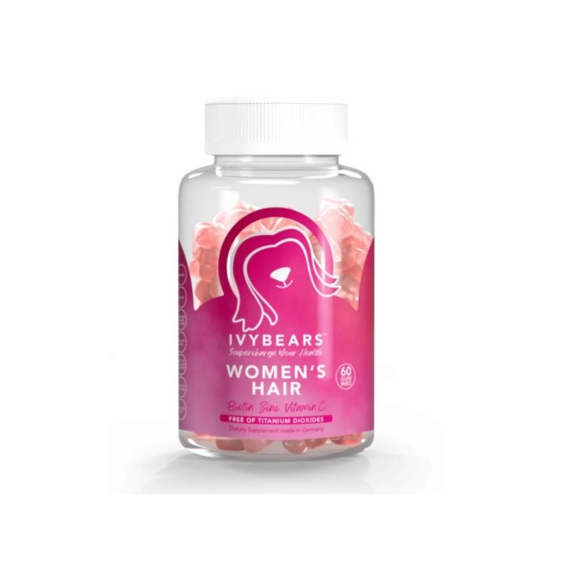 Ivybears Women's Hair s a nutritional supplement in gummy bear form and with a pleasant taste, scientifically formulated with a complex of vitamins designed to strengthen hair & nails and to make them shinier.