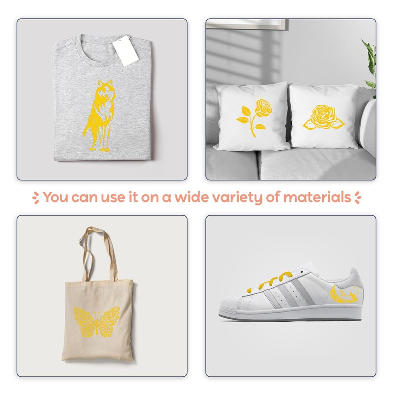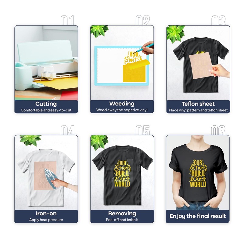 - Materiales de alta calidad: nuestro vinilo de prensa térmica está hecho para artesanos de vinilo HTV, ofreciendo una flexibilidad y durabilidad superiores; es fácil de trabajar y mantiene una fuerte unión a las telas, manteniéndose seguro incluso después de múltiples lavados