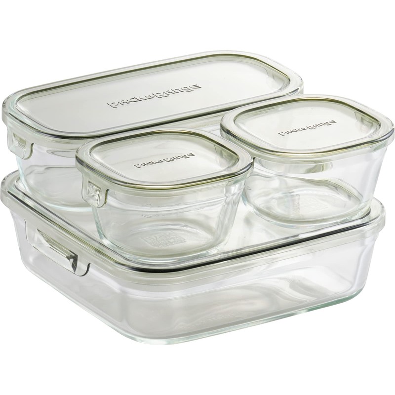 iwaki PC-PRN4G42 Heat Resistant Glass Storage Container, Olive Green, System Set, Mini Pack & Range