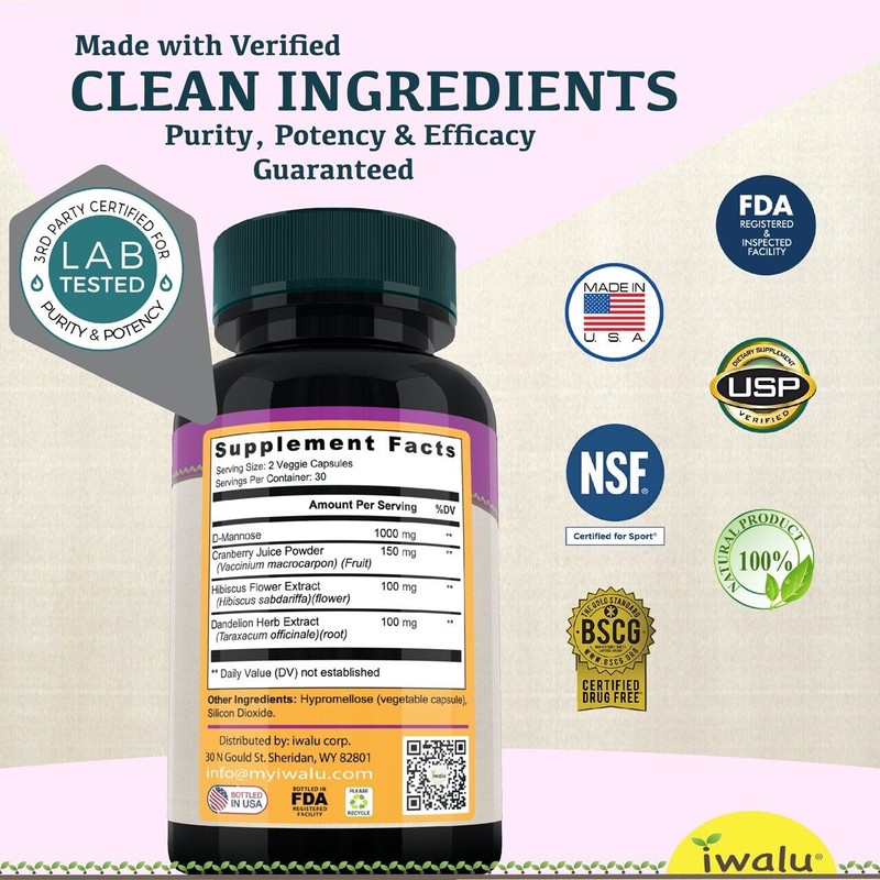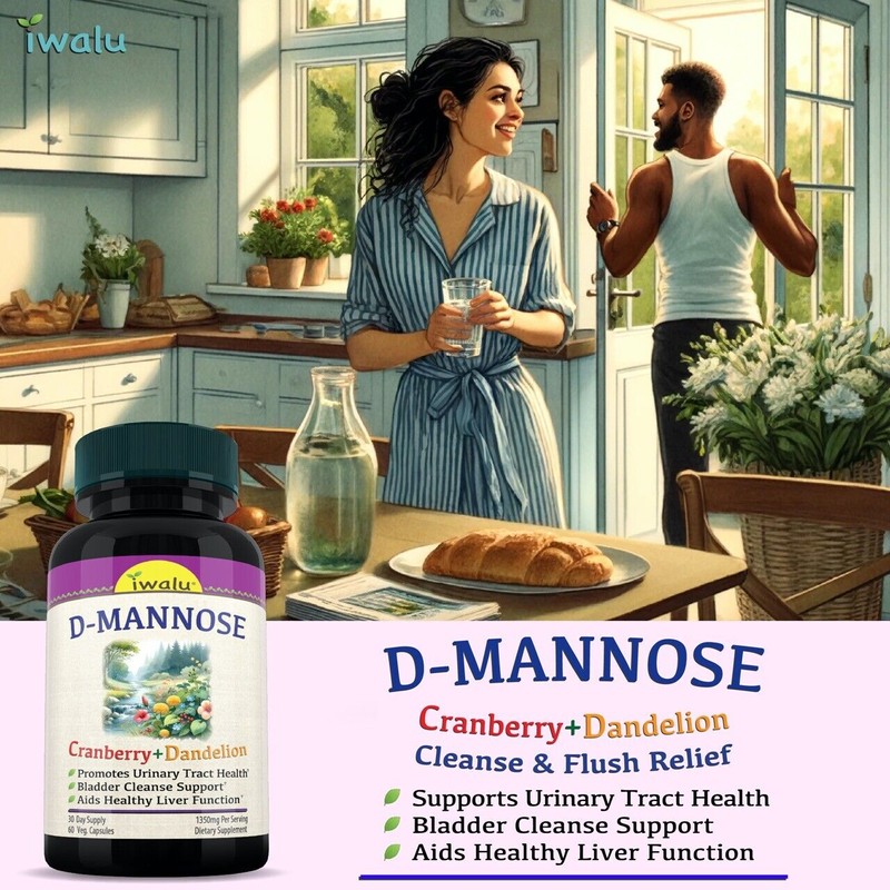 The D-Mannose Plex formula combines D-Mannose, cranberry juice extract, hibiscus extract, and dandelion root supplement to support urinary tract health and help prevent urinary tract infections.