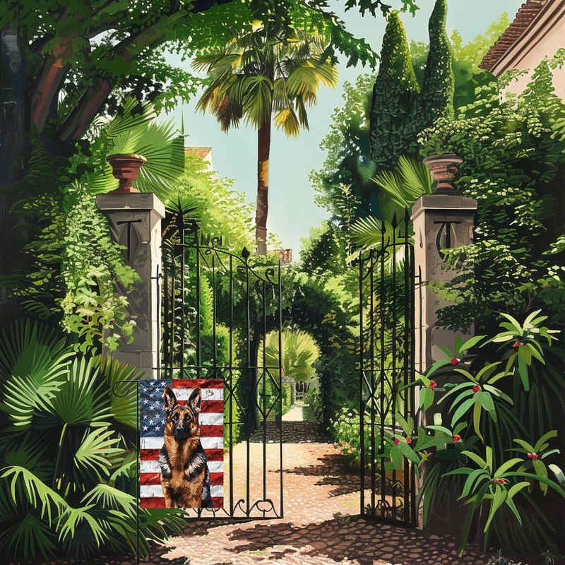 iWeeta Garden Flags German Shepherds with American Flag Background Double Sided Yard Flags 12x18 inch for Yard Outdoor Decor
