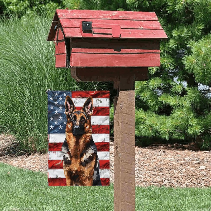 iWeeta Garden Flags German Shepherds with American Flag Background Double Sided Yard Flags 12x18 inch for Yard Outdoor Decor