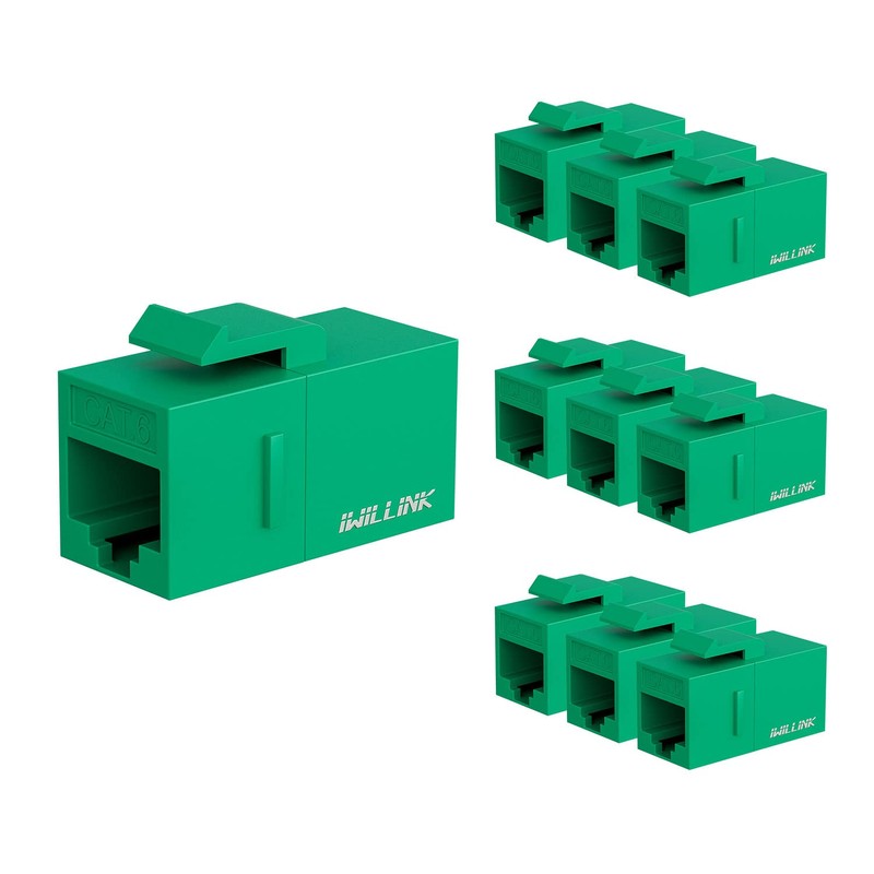 iwillink 10-Pack Female to Female Cat6 Keystone Jack, UTP Keystone Coupler Insert, Green