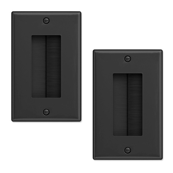 Iwillink Brush Wall Plate (2 Pack), Cable Pass Through Insert for Wires, Single Gang Cable Access Strap, Wall Socket for HDTV, Home Theater Systems - Black