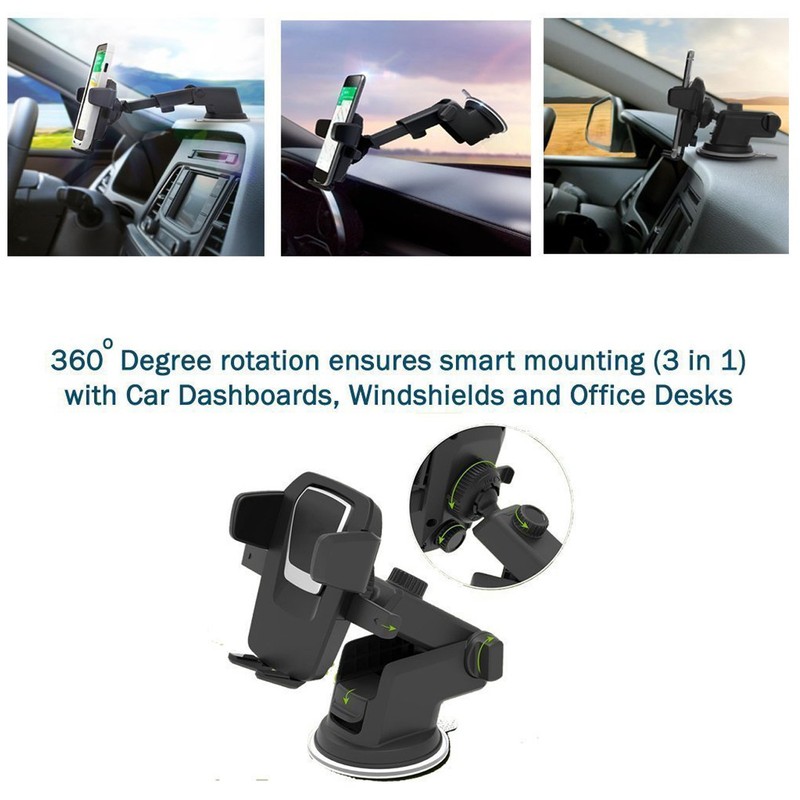 IWIO Car holder Phone Smartphone Premium onetap Technology 360 Degrees One Touch Windscreen and Dashboard Extendable compatible with Motorola Moto G7 Plus 2019 - BLACK