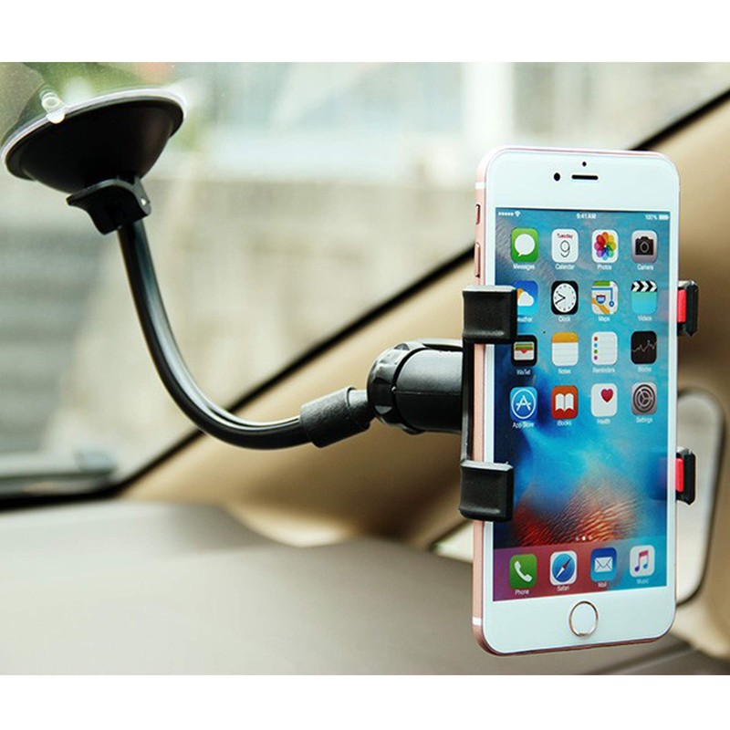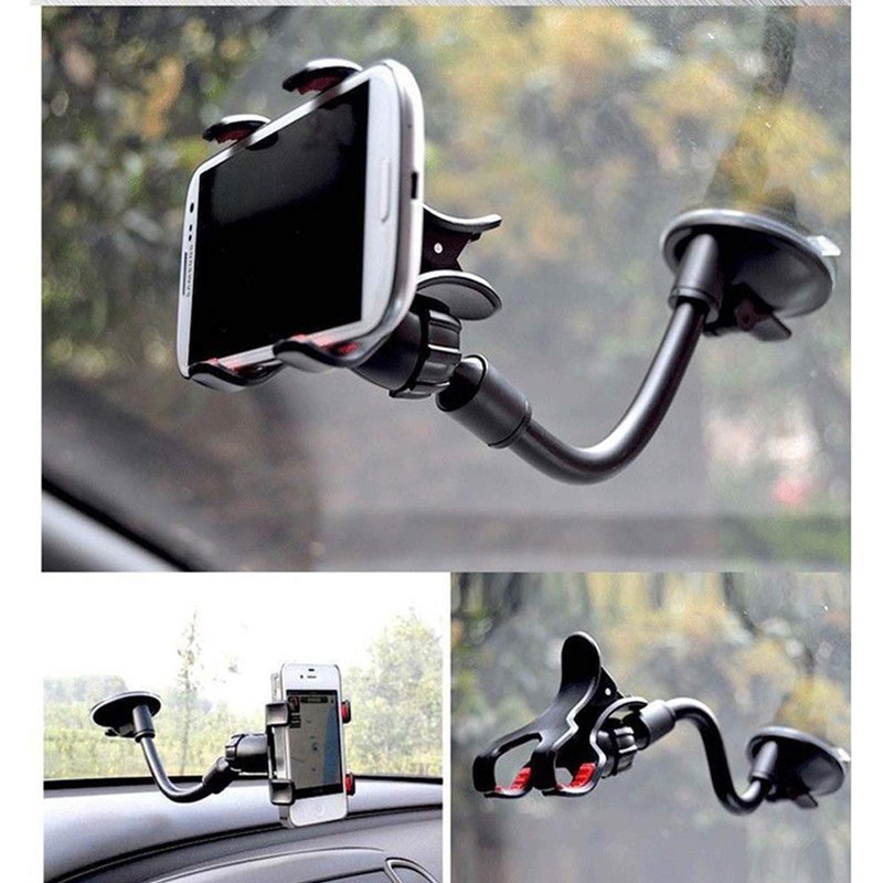 IWIO Double Claw Gripper 360 Degree Dashboard/Windscreen Clip On Suction Mount Mobile Phone Car Holder compatible with HTC Wildfire X 2019 - BLACK