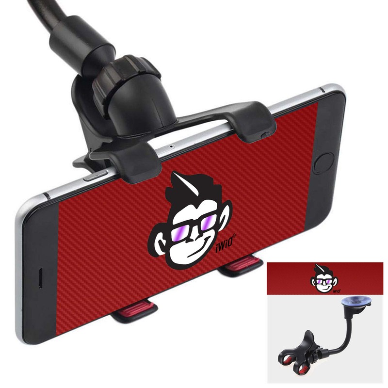 IWIO Double Claw Gripper 360 Degree Dashboard/Windscreen Clip On Suction Mount Mobile Phone Car Holder compatible with Motorola Moto E6 2019 - BLACK