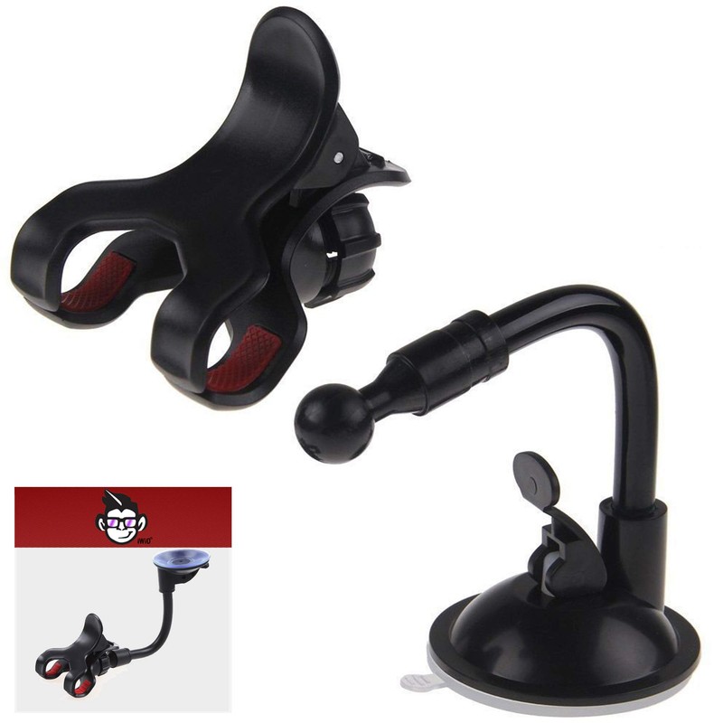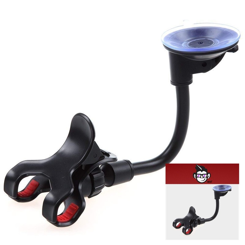IWIO Double Claw Gripper 360 Degree Dashboard/Windscreen Clip On Suction Mount Mobile Phone Car Holder compatible with Sony Xperia L3 2019 - BLACK
