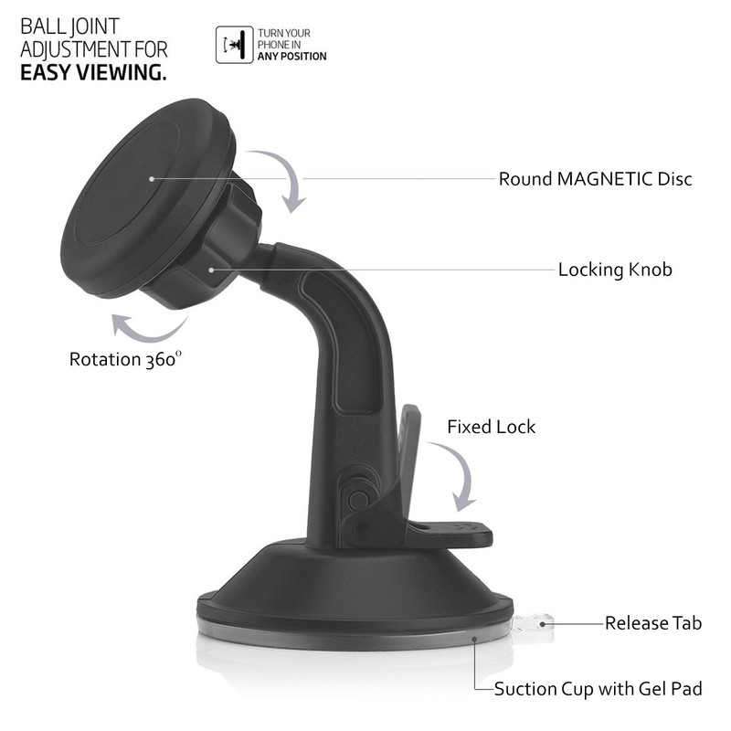 - Magnetic Head swivels to help you find the comfortable viewing angle when following the GPS or for handsfree talking. Top is reversible so you can lean a larger phablet against the base for additional stability.